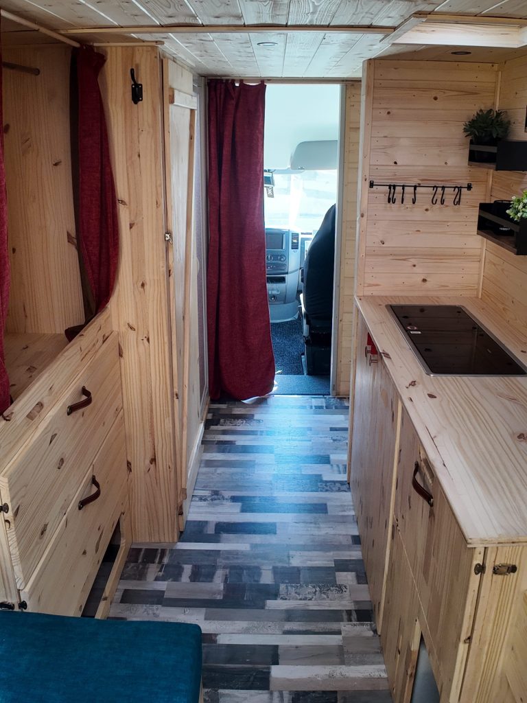 Un grand Mercedes Sprinter H3L5 totalement aménagé pour deux personnes.